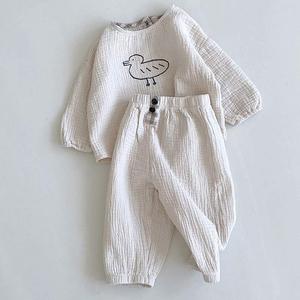 婴儿衣服春秋薄款休闲棉麻小童两件套六个月一岁男女宝宝春秋夏装