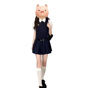 白色衬衫+藏蓝背带裙【套装】配胸针+同款皮带