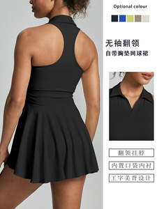 胸パッド付きレギンス付き女性用クロスボーダーハイエンドテニススカートスーツ、アウトドアバドミントンスーツ、ヨガスポーツスカート