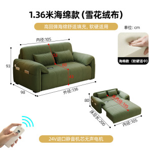 電動ソファベッド兼用小型リビングルームバルコニー書斎多機能つや消し布寝室折りたたみソファベッド