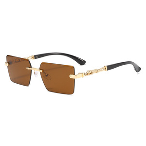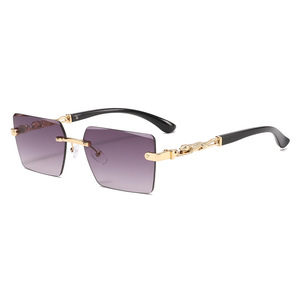 新款欧美复古无边框切边墨镜男防紫外线护目太阳镜潮防晒太阳眼镜