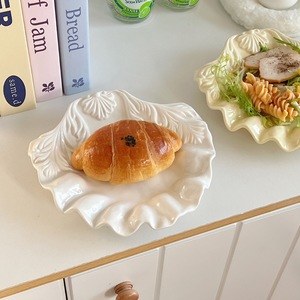 優しいクリーム色のシェルセラミックディナープレートインスタイル韓国ハイエンドジュエリー収納トレイサラダフルーツカットトレイ