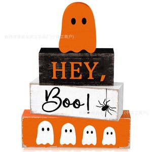 ハロウィンゴーストウッドブロックオーナメントクリエイティブお化け屋敷ブーセットデスクトップ撮影小道具木製工芸品オーナメント