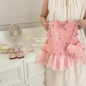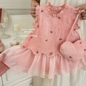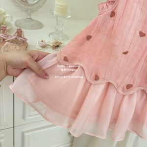 [Xian Ning Qi] オリジナルガールズベストスカート夏の新しい子供のラブプリンセススカート甘いドレス