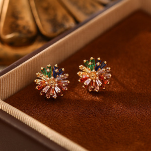 カラフルなジルコンイヤリング銅メッキリアルゴールド S925 シルバー針カラー手作りマイクロ象嵌ホットスタイル気質ハイエンドイヤリング女性用