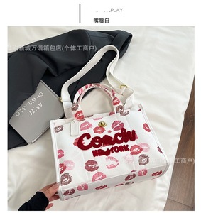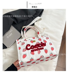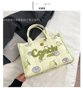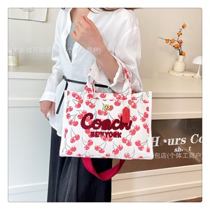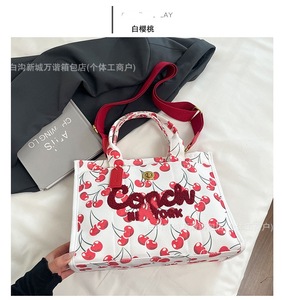 貿易レディースバッグファッションヨーロッパとアメリカのチェリーシンプルな人気のレターハンドバッグ2025夏の新しい質感のトートバッグ