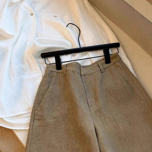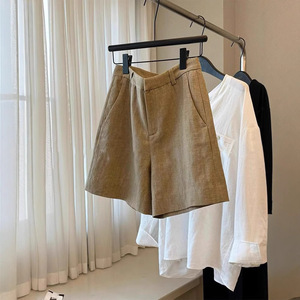 CHAO級おすすめ!おしゃれでカジュアルな高級オールドマネースタイル~カーキリネンハイウエスト着痩せ脚長ショートパンツ