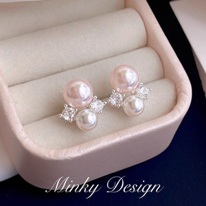 フレンチジェントルピンクパールジルコンイヤリング女性用 2025 新しいニッチデザインイヤリングライト高級ハイエンドイヤリング