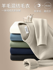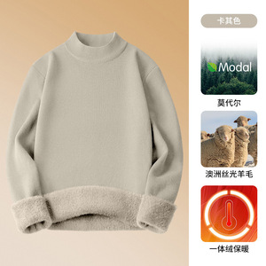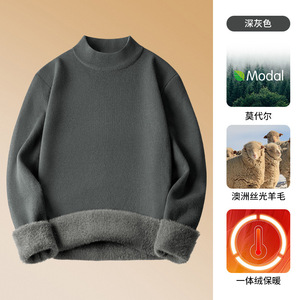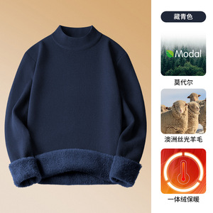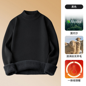 冬用のシンプルなモーダルセーターメンズベルベット厚みのあるハーフタートルネックニットボトムシャツ男性用の高級ウールセーター