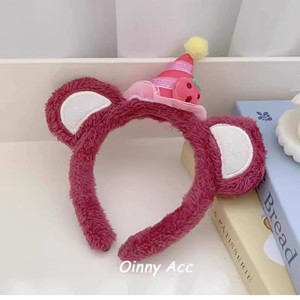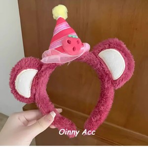Zhao Lusi の同じスタイルのイチゴクマの誕生日帽子ヘッドバンド女性の遊園地ヘアアクセサリーかわいい漫画ぬいぐるみ洗顔ヘッドバンド