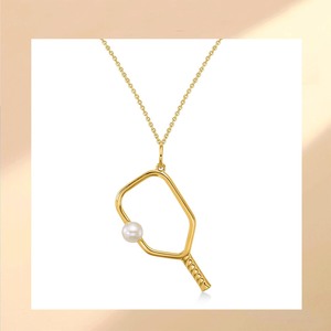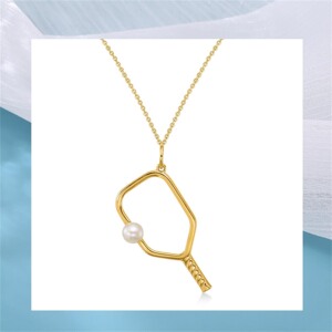 2025跨境新品匹克球桨吊坠项链黄铜锁骨链精致活力气质通勤配饰女