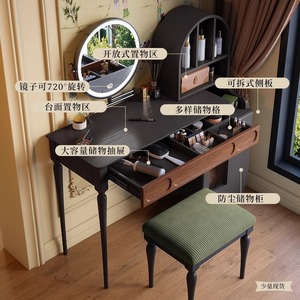 复古梳妆台中古实木化妆桌美式卧室小户型新中式办公桌镜子可拿开