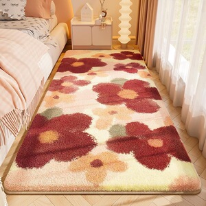 ベッドサイドブランケット厚みのある模造カシミヤカーペット漫画ルームストリップ寝室汚れにくいお手入れが簡単な豪華なフロアマット卸売