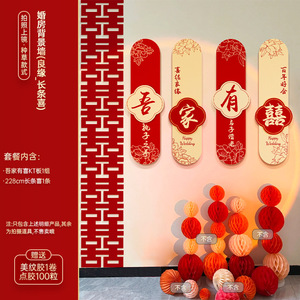 【神仙眷属】婚房背景墙+长条喜+蜂窝球
