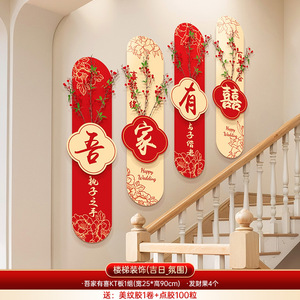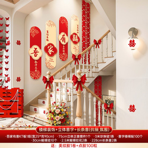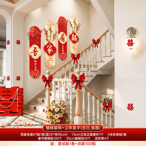 婚房布置套装男女方结婚礼新房楼梯背景墙面喜字KT板扶手拉花装饰