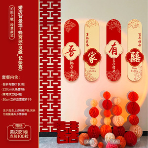 【良辰吉日】婚房背景墙+长条喜+蜂窝球