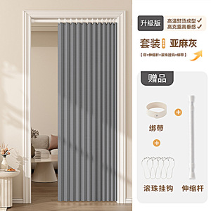 【非磁性モデル】リネングレー(カーテン+伸縮ロッド+ストラップ)