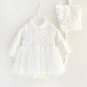 春と秋の子供服ベビー服韓国風レースメッシュプリンセスドレスベビーバッグスカート無料帽子