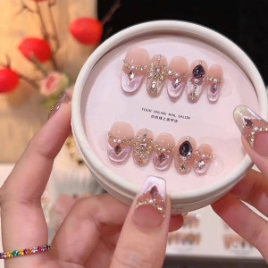 【紫宝石】爆款纯手工穿戴甲高级显白猫眼纯手作美甲贴闪钻10片装