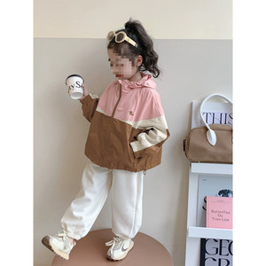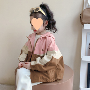 女の子ジャケット秋服 2025 新しい子供のフード付きジャケット西洋スタイルショートウインドブレーカー春と秋の子供服
