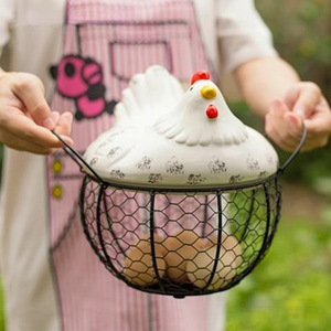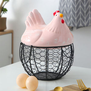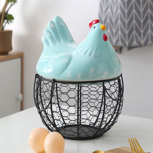 セラミックエッグバスケット、フルーツバスケット、雑貨、ブルーセラミックキッチンラック、クリエイティブストレージ、アイアンバスケット、アイアンストレージバスケット