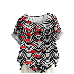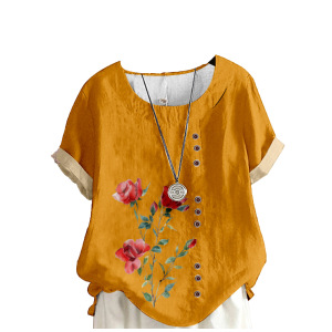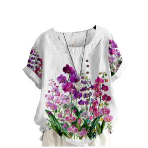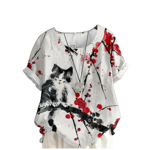 2025 新しいヨーロッパとアメリカのファッション女性のラウンドネックシャツ新しい JM05 エレガントなプルオーバースタイルスプライシング半袖