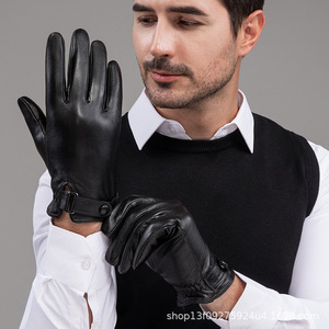 男士真羊皮手套冬季保暖加绒加厚触屏开车骑行商务皮手套防风防寒