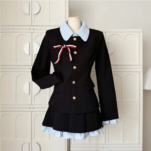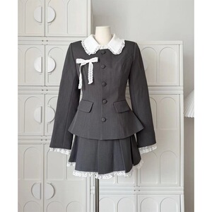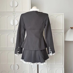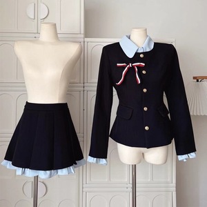 女款 剑桥富家女 学院千金风套装假两件收腰西装外套百褶短裙套装