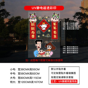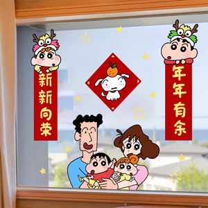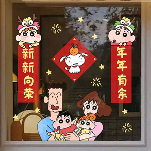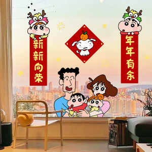 2026年馬年新年あけましておめでとうございます春の対句ガラス静電クレヨンしんちゃん春祭り装飾出窓窓花ステッカー