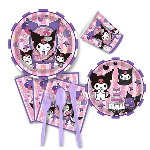 Amazon スポット クロミ 誕生日パーティー用品 使い捨て漏れ防止紙皿 紙コップ ティッシュ カトラリーセット