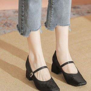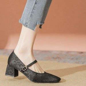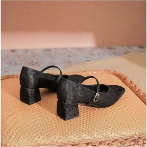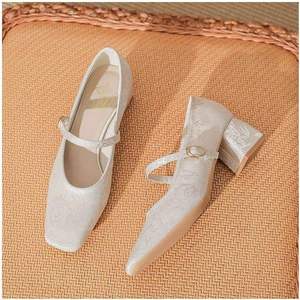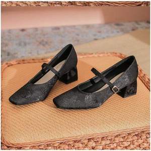 旗袍鞋女2025新款复古绣花粗跟新中式小个子增高配马面裙单鞋女
