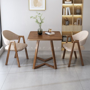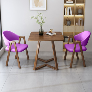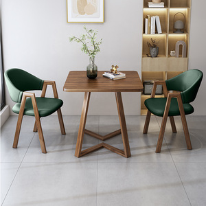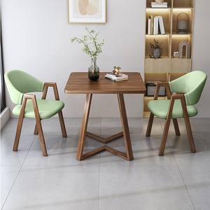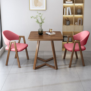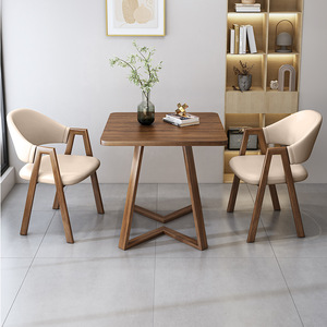シンプルカジュアルな受付商談テーブルと椅子の組み合わせミルクティーショップカフェ店受付テーブル2脚バルコニー小さな正方形テーブル