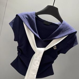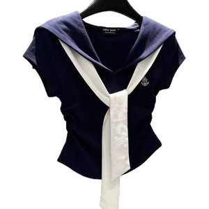 韩系学院风时尚撞色海军领短袖T恤女2025夏季新款修身显瘦上衣ins