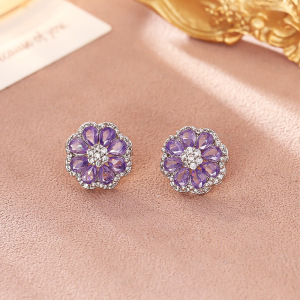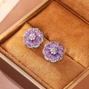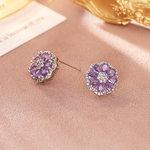 高级感天然坦桑石耳钉小众设计精致时尚气质耳钉轻奢个性耳饰批发