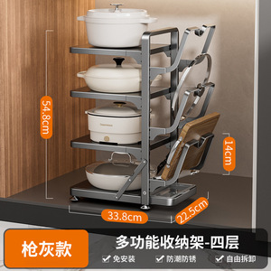 G-09枪灰-多功能不锈钢锅架组合四层(可折叠+层高调节)