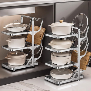 厨房落地置物架家用分层不锈钢锅盖锅具砧板货架式多功能收纳架子