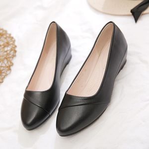 Baimuniu 本革フラットシューズ、フェミニンなラウンドトゥ、多用途、滑り止め、柔らかいソール、長時間立つのに最適、柔らかい革のマザーズシューズ