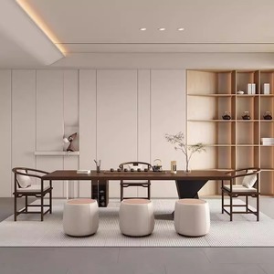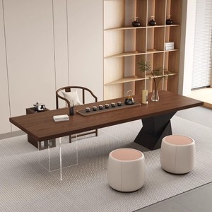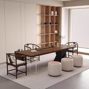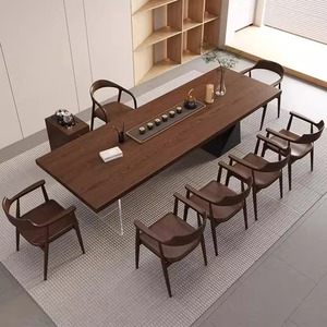 新しい中国風の無垢材のティーテーブル、丸太の大きなボード、シンプルなティーテーブル、会社オフィスの受付と交渉、ティーテーブルと椅子の組み合わせ