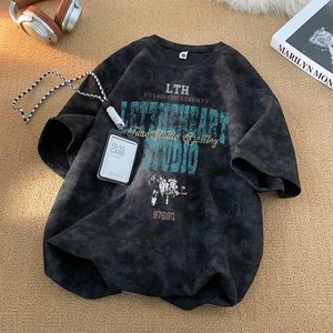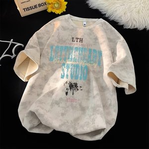 重磅短袖t恤男ins美式痞帅水洗半袖体恤夏季新款索罗娜做旧上衣25