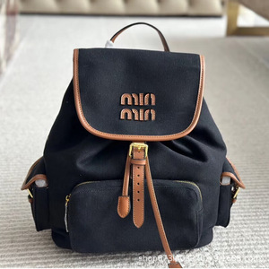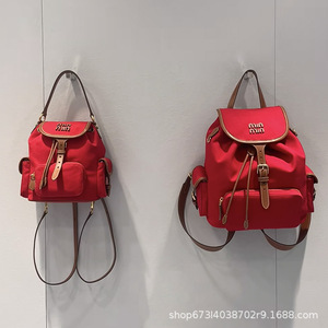 2025走秀新款张元英同款学院风真皮书包抽绳帆布双肩包百搭背包女