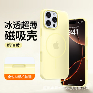 Apple 17 超薄型氷透過性磁気電話ケース iphone16 液体シリコン保護カバー 15 に適した統合ボタン