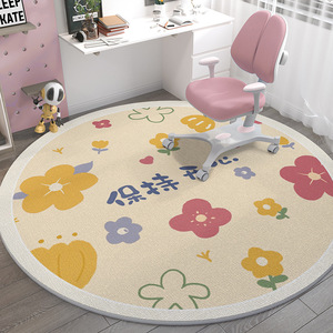 圆形地毯儿童房学生学习书桌地毯游戏区读书角水晶绒地垫可代发