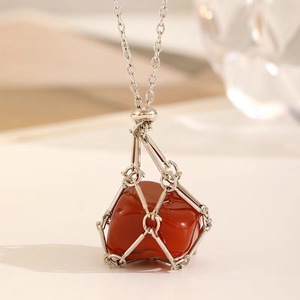 クロスボーダー交換可能なクリスタル原石メッシュバッグ織りメタルメッシュバッグネックレス竹ネックレスペンダントセーターチェーン調整チェーン