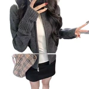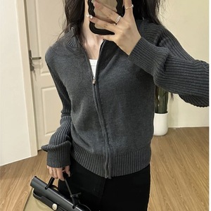 开衫外套女秋冬休闲风外搭修身长袖软糯纯色拉链针织毛衣小众上衣