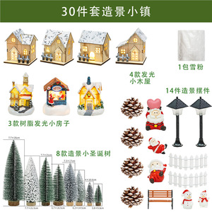 クロスボーダークリスマス発光キャビンオーナメントクリスマスツリーマイクロランドスケープタウン暖炉装飾シーンレイアウト