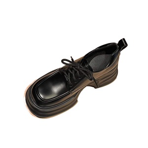 英伦风小皮鞋女2025新款厚底松糕鞋单里乐福鞋内增高系带高跟单鞋