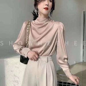 シャツレディースデザインニッチレトロ香港スタイルシャツサテンアセテートプロフェッショナルスタイルファッショナブルなスタンドカラートップ秋