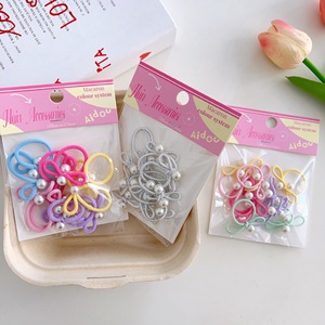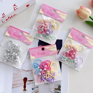 キャンディーカラーの子供用ヘアバンド、甘いリボンヘアロープ、髪を傷つけない、高弾性パールヘッドバンド、ヘアゴムヘアアクセサリー