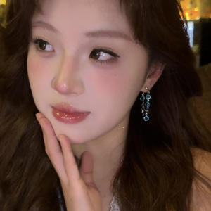 スーパーフラッシュグレイシャーブルークリスタルタッセルイヤリング女性のための 2025 新しいライト高級ニッチデザインイヤリングハイエンドイヤリング