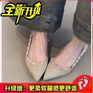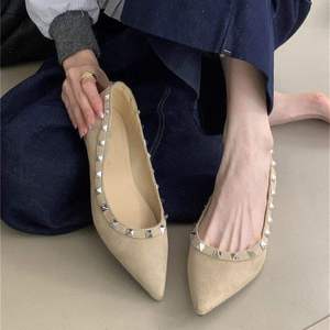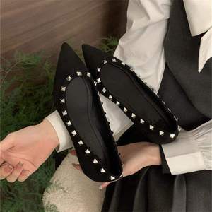 时尚铆钉尖头软底芭蕾单鞋2025新款浅口小香风平底鞋平跟豆豆鞋